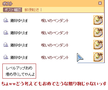 で、ラテ公式サイトで有名な「藤好ゆりぽ」さんから郵便テロがありました!!
